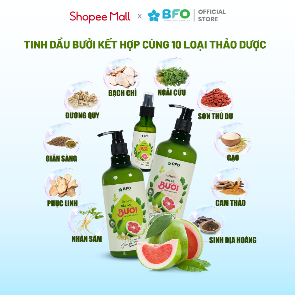 Combo 2 Xịt Dưỡng Tóc Tinh Dầu Bưởi Kích Thích Mọc Tóc, Dưỡng Tóc, Phục Hồi Tóc Hư Tổn BFO Behair