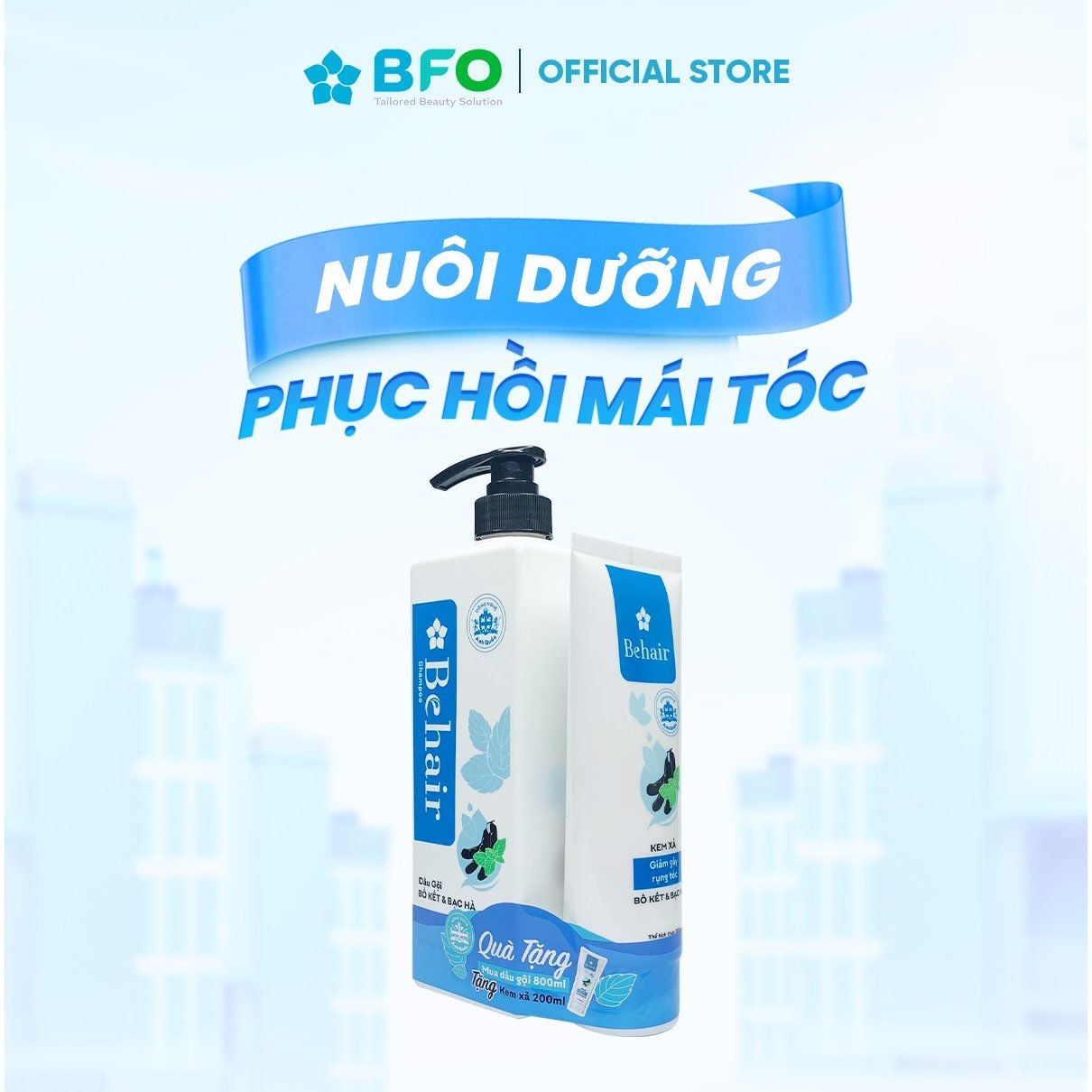 Combo Dầu Gội và Kem Xả BFO Tinh Dầu Bồ Kết Bạc Hà Cho Tóc Suôn Mượt, Chắc Khoẻ 800ml
