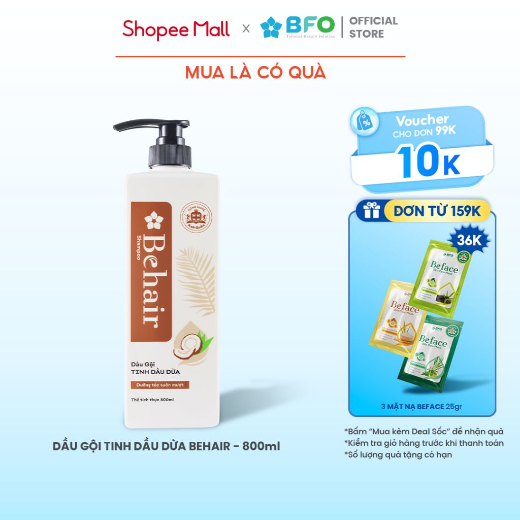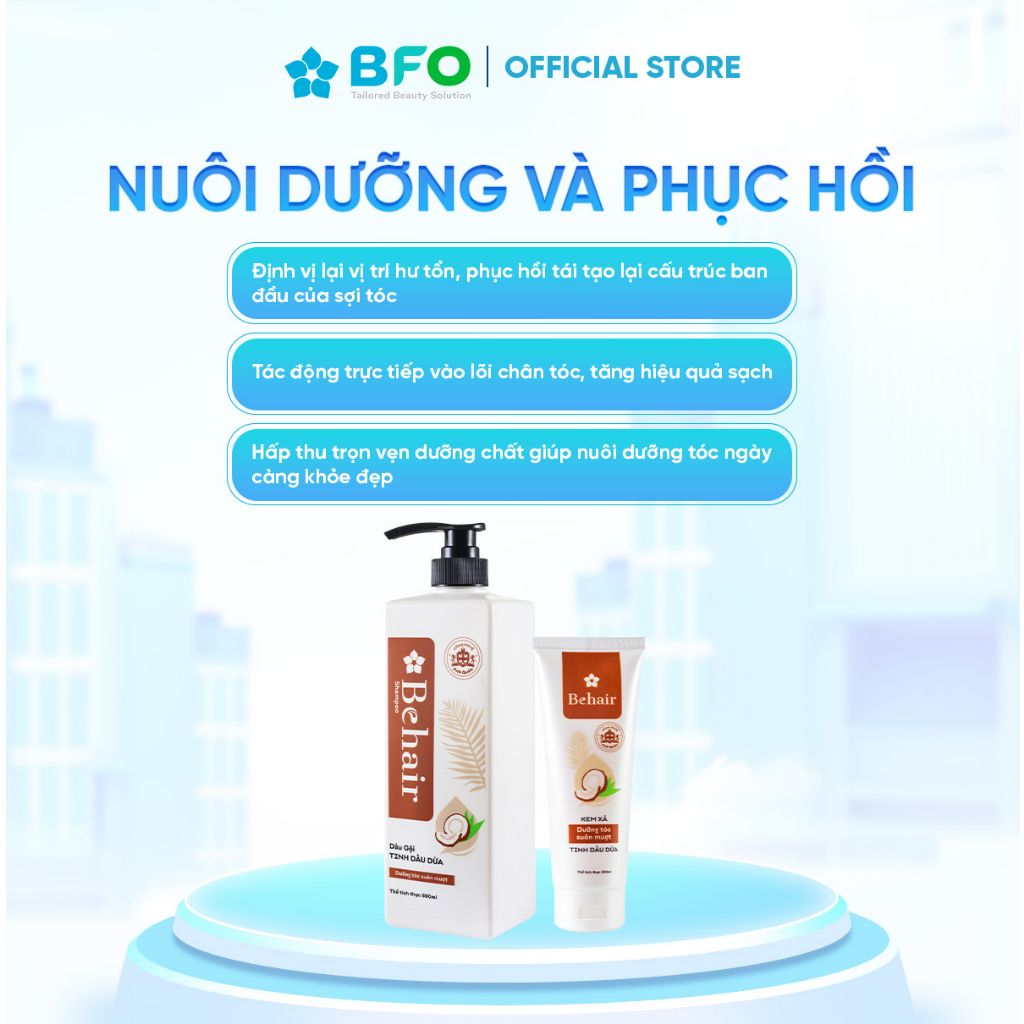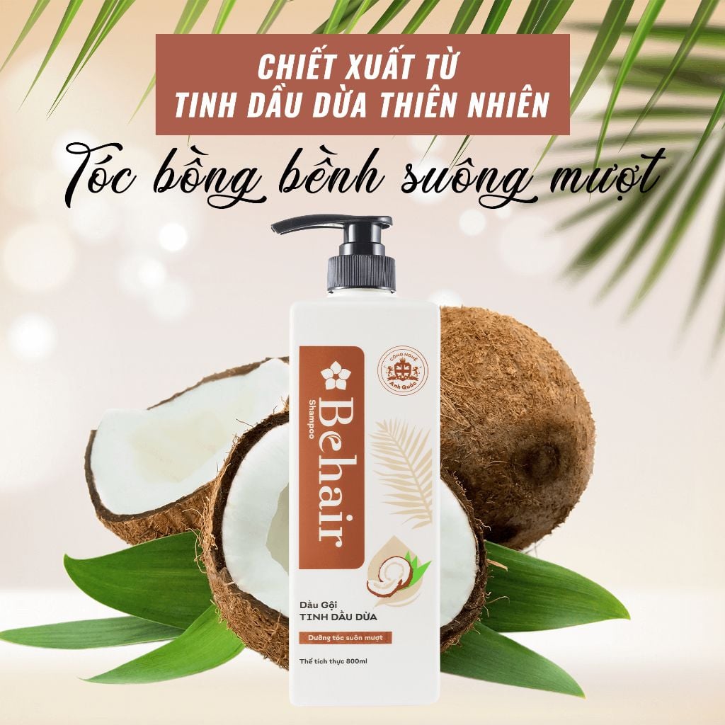 Dầu Gội Tinh Dầu Dừa BFO Behair Dưỡng Ẩm Phục Hồi Tóc Khô Xơ 800ml