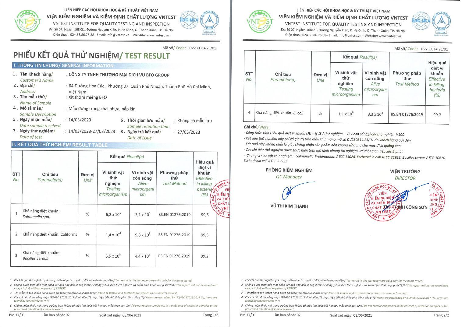 Sản phẩm được kiểm nghiệm hiệu quả đến 99% khả năng diệt vi khuẩn khoang miệng