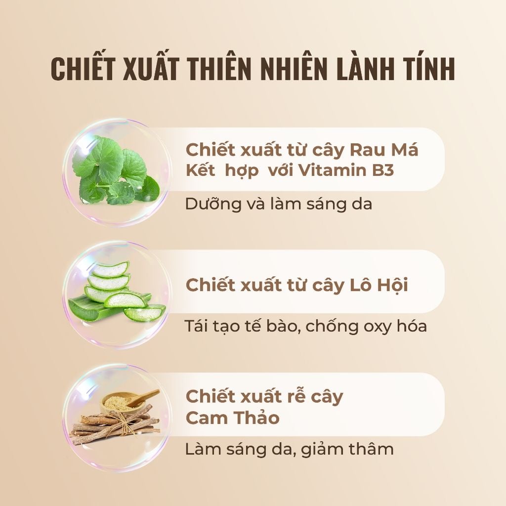 - Thành phần chiết xuất thiên nhiên, an toàn cho da.
