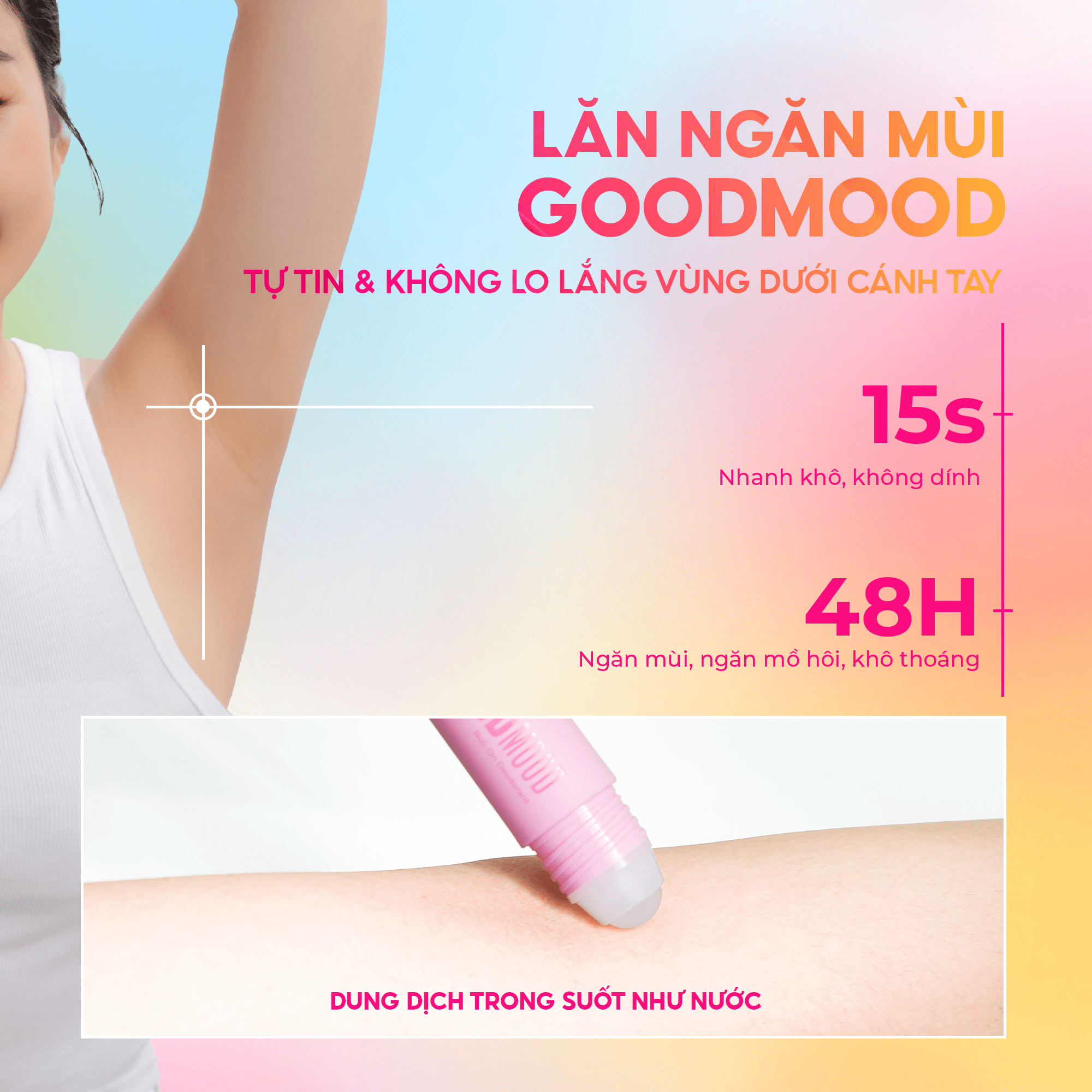Goodmood Mint: hương bạc hà tươi mát, sảng khoái ngay khi lăn. Hương thơm nhẹ, tự tin, tiếp năng lượng cho ngày dài năng động.