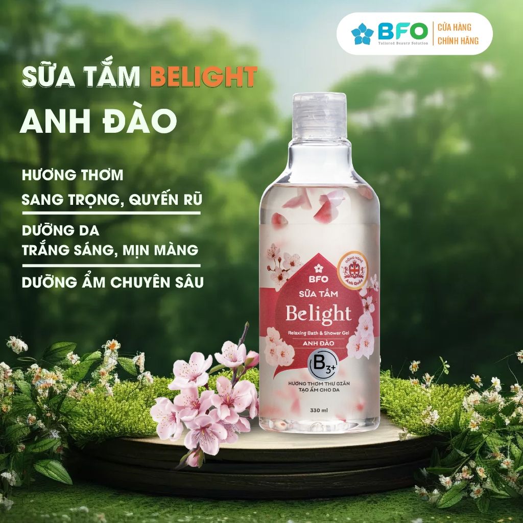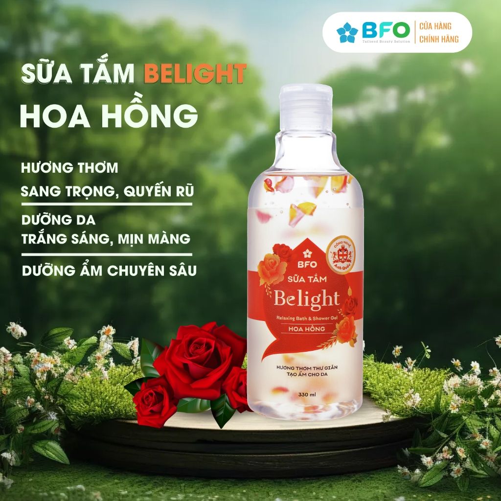 Sữa Tắm Cánh Hoa Tinh Dầu Dưỡng Trắng Da Mịn Màng Lưu Hương Quyến Rũ Belight 330ml