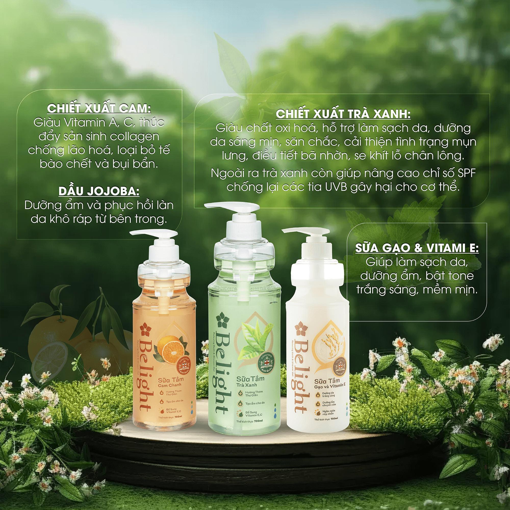 Không chỉ mang đến hương thơm mát, dịu nhẹ, thoải mái tinh thần mà sữa tắm Belight chiết xuất từ tinh dầu còn giúp cung cấp các dưỡng chất thiết yếu, giúp da sáng mịn, săn chắc, sạch khuẩn sau khi sử dụng.