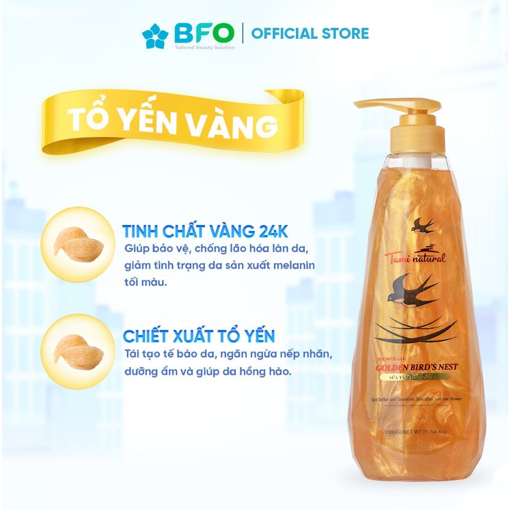 Sữa Tắm Dưỡng Trắng Tổ Yến Vàng Tami Natural Dịu Nhẹ Dưỡng Ẩm Và Làm Sáng Da Dung Tích 260ml/600ml