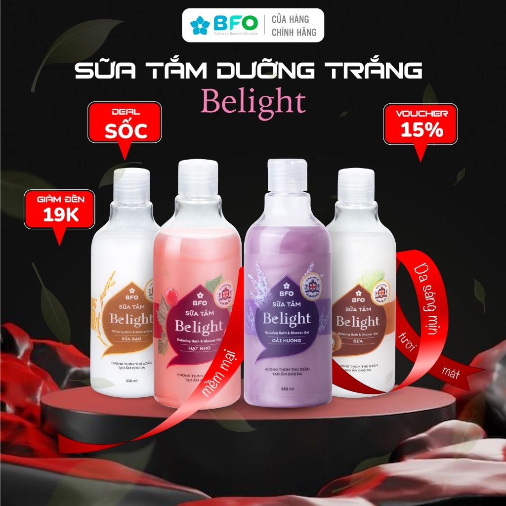Sữa Tắm Hương Nước Hoa Dưỡng Trắng Da Giữ Ẩm BFO Belight 330ml