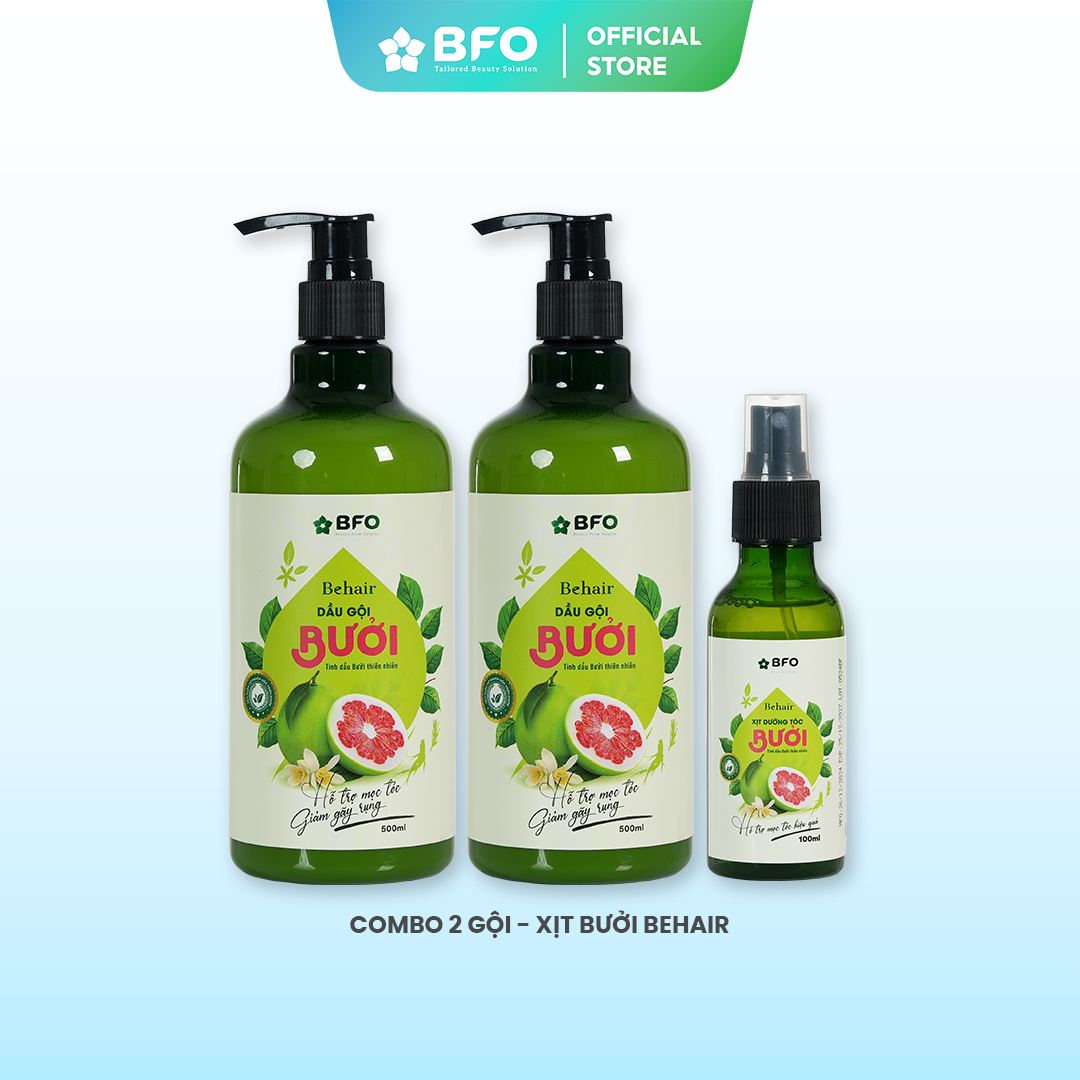 [TẶNG XỊT DƯỠNG TÓC 100ml] Combo 2 Dầu Gội Bưởi Kích Thích Mọc Tóc, Dưỡng Tóc, Phục Hồi Tóc Hư Tổn BFO Behair 500ml